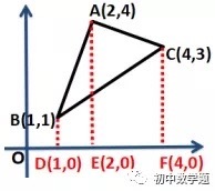 ③也可以通过重组转化成直角梯形面积的和与差。例如下图,S△ABC=S梯形ABDE+S梯形CAEF-S梯形CBDF