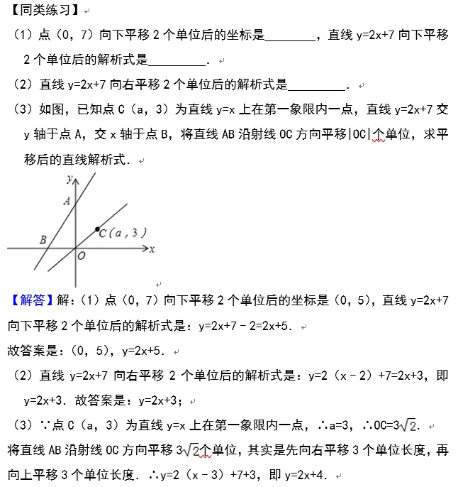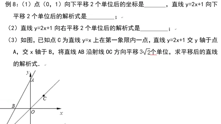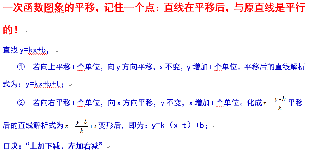 【小结】初中阶段,平面直角坐标系中的平移问题就这么多,简单的就是水平和竖直方向的平移,但是要把点和函数的平移区分开。