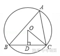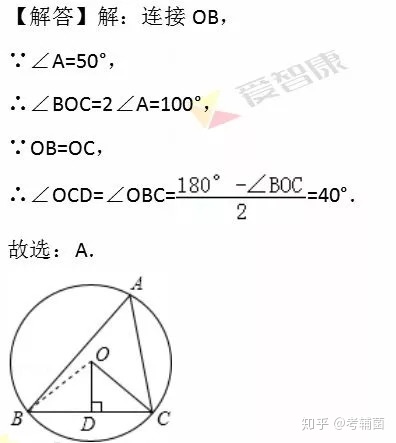 【例2】如图,△ABC内接于⊙O,OD⊥BC于D,∠A=50°,则∠OCD的度数是()