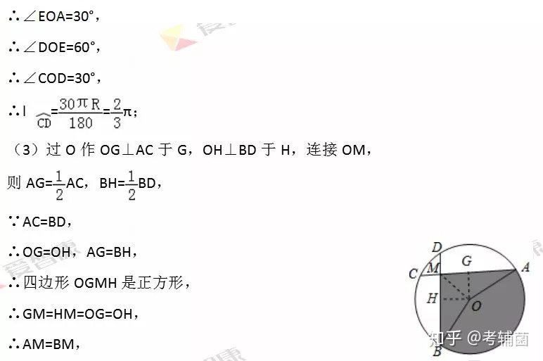 【分析】这道题目考查的是垂径定理,扇形面积的计算,以及全等三角形的判断和性质,我们需要根据题意作出辅助线,构造出直角三角形是解答此题的关键.第一问可以延长AO交⊙O于点F,连接CF,延长BO交⊙O于点E,连接DE,根据圆周角定理得出∠EDB=∠FCA=90°,故可得出△DEB≌△CFA,由此得出结论;