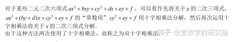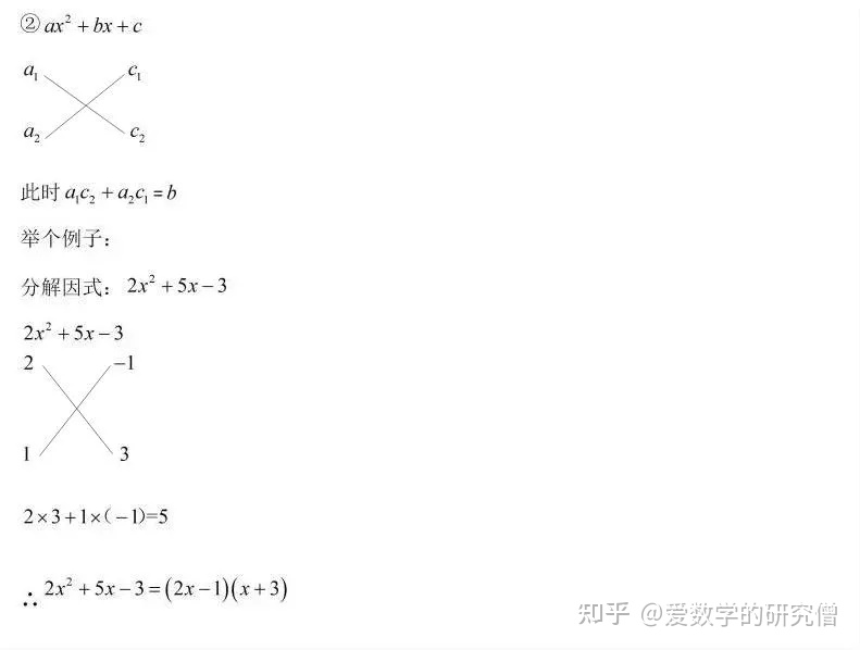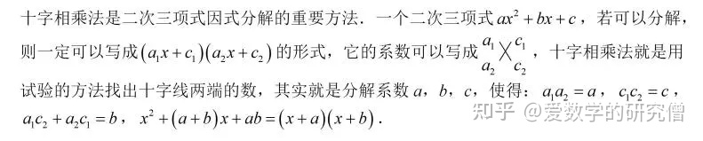 十字相乘法口诀:首尾分解,交叉相乘,求和凑中。