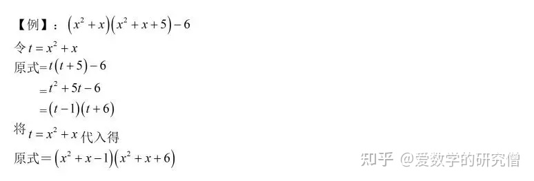 换元法作为一种因式分解的常用方法,其实质是整体思想,当看作整体的多项式比较复杂时,应用换元法能够起到简化计算的作用.