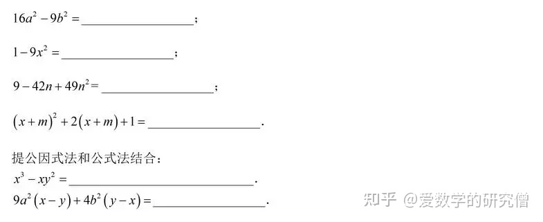 如果把乘法公式反过来,就可以把某些多项式分解因式,这种方法叫公式法。