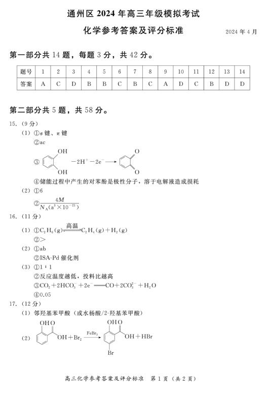 上一篇 : 2024届北京通州高三一模化学试题答案(图片版)