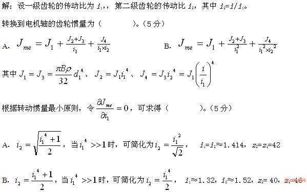 | 一、判断题(共 10 道试题,共 40 分。) 1. 信息处理技术是指在机电一体化产品工作过程中,与工作过程各种参数和状态以及自动控制有关的信息输入、识别、变换、运算、存储、输出和决策分析等技术。 A. 错误 B. 正确 2. 为减少机械传动部件的扭矩反馈对电机动态性能的影响,机械传动系统的基本固有频率应低于电气驱动部件的固有频率的2~3倍,同时,传动系统的固有频率应接近控制系统的工作频率,以免系统产生振荡而失去稳定性。 A. 错误 B. 正确 3. 齿轮传动的啮合间隙会造成一定的传动死区,若在闭环系统中,传动死区会使系统产生低频震荡。 A. 错误 B. 正确 4. 产品的组成零部件和装配精度高,系统的精度一定就高。 A. 错误 B. 正确 5. 在滚珠丝杠螺母间隙的调整结构中,齿差式调隙机构的精度较高,且结构简单,制作成本低。 A. 错误 B. 正确 6. 系统的静摩擦阻尼越大,使系统的回程误差增大,定位精度降低。 A. 错误 B. 正确 7. 为减少机械传动部件的扭矩反馈对电机动态性能的影响,机械传动系统的固有频率应接近控制系统的工作频率,以免系统产生振荡而失去稳定性。 A. 错误 B. 正确 8. 采用偏心轴套调整法对齿轮传动的侧隙进行调整,结构简单,且可以自动补偿侧隙。 A. 错误 B. 正确 9. 系统论、信息论、控制论是机电一体化技术的理论基础,是机电一体化技术的方法论。 A. 错误 B. 正确 10. 在闭环系统中,因齿轮副的啮合间隙而造成的传动死区能使系统以6~10倍的间隙角产生低频振荡,采用消隙装置,以提高传动精度和系统稳定性。 A. 错误 B. 正确 二、单项选择题(共 10 道试题,共 40 分。) 1. 以下产品不属于机电一体化产品的是( )。 A. 机器人 B. 移动电话 C. 数控机床 D. 复印机 2. 机械系统中阻尼越大,最大振幅越小,且衰减越快,因此,适当的提高阻尼可以提高系统的稳定性。根据经验,阻尼比ξ一般取为( )。 A. 0≤ξ≤0.7 B. 0.4≤ξ≤0.7 C. 0.4≤ξ≤1 D. 0≤ξ≤1 3. 机械传动部件的阻尼比和以下哪个因素无关?( ) A. 粘性阻尼系数 B. 抗压刚度系数 C. 转动惯量 D. 质量 4.以下哪一项措施不能机械系统的减小传动误差?( ) A. 提高零部件本身的精度 B. 合理设计传动链 C. 减小零部件的质量 D. 采用消隙机构 5. 以下产品不属于机电一体化产品的是( )。 A. 工业机器人 B. 打印机 C. 空调 D. 电子计算机 6. 导程L0=8mm的丝杠的总质量为6kg,标称直径为40mm,则其转动惯量为( )kg·mm2。 A. 1200 B. 480 C. 120 D. 48 7. 以下哪一项动态特性不受机械系统刚度的影响?( ) A. 精度 B. 失动量 C. 固有频率 D. 稳定性 8. 多级齿轮传动中,各级传动比相等的分配原则适用于按( )设计的传动链。 A. 最小等效转动惯量原则 B. 输出轴的转角误差最小原则 C. 重量最轻原则(小功率装置) D. 重量最轻原则(大功率装置) 9. 机电一体化技术是以( )技术为核心,强调各种技术的协同和集成的综合性技术。 A. 自动化 B. 电子 C. 机械 D. 软件 10. 为降低机电一体化机械传动系统的固有频率,应设法( )。 A. 减小系统刚度 B. 减小系统转动惯量 C. 减小系统的驱动力矩 D. 减小系统的摩擦阻力 三、计算题(共 2 道试题,共 20 分。) 1. ![]() ![]() 2. ![]() ![]() |