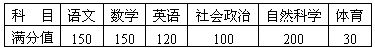 | 2004年某市初中毕业、升学考试各学科及满分值情况如下表:若把2004年某市初中毕业、升学考试各学科满分值比例绘成扇形统计图,则数学所在的扇形的圆心角是( )度. |