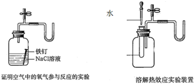 最佳答案: 钢铁锈蚀条件是:同时和氧气、水接触,可以将试管中铁钉浸在水里,让铁钉同时和氧气、水接触,钢铁锈蚀是吸氧腐蚀,氧气的量会减少,可以用U型气压计来检测氧气量的减少,硝硝酸铵溶解是吸热的过程,吸收的热能让周围气体温度降低,气体热胀冷缩,降温使气压减少,可以用U型气压计来检测,可设计实验如图: