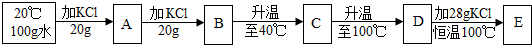 ①A~E中,溶液中溶质质量分数相同的是______.②下列操作能使E溶液中溶质质量分数变小的是______(填字母序号).a.加入2g KCl b.加入100g 100℃的水 c.降温至40℃