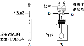 (2)B实验用于确认二氧化碳与氢氧化钠能发生化学反应(实验前K1、K2均处于关闭状态).请写出实验中K2处于关闭状态下打开K1时发生反应的化学反应方程式______;打开K1后,再打开K2时观察到的现象______.