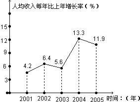 观察市统计局公布的“十五”时期重庆市农村居民人均收入每年比上一年增长率的统计图,下列说法正确的是()A.2003年农村居民人均收入低于2002年B.农村居民人均收入比上年增长率低