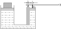 汽车更换轮胎时需要把车轴抬起来,这时可以使用油压千斤顶.下图是千斤顶的原理图.有关尺寸如图所示,OA长为6cm.如果希望在手柄B处用20N的力向下压时,此时在小活塞上产生200N向下的