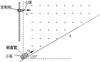 如图所示,倾角为30°的粗糙斜面的底端有一小车,车内有一根垂直小车底面的细直管,车与斜面间的动摩擦因数μ=4315,在斜面底端的竖直线上,有一可以上下移动