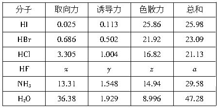 (1)考察表中HCl、HBr、HI的色散力、取向力、诱导力以及它们构成的范德华力的大小顺序,并作出解释。