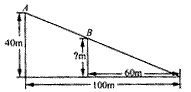 | 下图是一个山坡的示意图(假定山坡的坡度处处相同),如果A点的高度是40m,B点的高度应是多少米? |