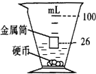 (3)量杯中水面处刻度V3=26ml,硬币的总体积v=V3-V1=26ml-22ml=4ml=4×10-6m3,