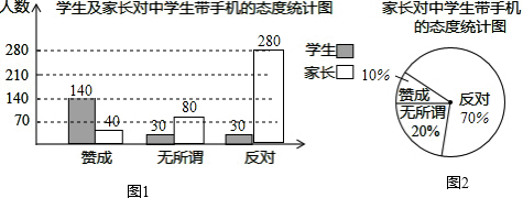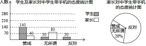 “校园手机”现象越来越受到社会的关注,小记者张明随机调查了某校若干学生和家长对中学生带手机现象的看法,制作了如图所示的统计图:(1)这次调查的总人数有______人;(2)补全