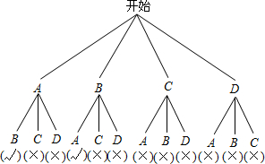 则赞成的百分比是:1-20%-70%=10%, 补全图形如下: ![]() (3)设小亮、小明的家长分别用A、B表示,另外两个家长用C、D表示,列树状图如下: ![]() ∴一共有12种等可能的结果,同时选中小亮和小明家长有2种情况, ∴P(小亮和小明的家长被同时选中)=2÷12=