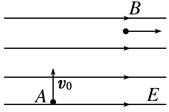 一带电质点从图中的A点竖直向上以速度v0射入一水平方向的匀强电场中,质点运动到B点时,速度方向变为水平,已知质点质量为m,带电荷量为q,A、B间距离为L,且AB连线与水平方向成