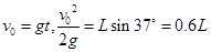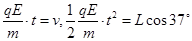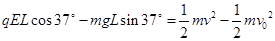 一带电质点从图中的A点竖直向上以速度v 0 射入一水平方向的匀强电场中,质点运动到B点时,速度方向变为水平,已知质点质量为m,带电荷量为q,A、B间距离为L,且AB连线与水平方向成θ=37°角,质点到达B后继续运动可到达与A点在同一水平面上的C点(未画出),则( ) A.质点在B点的速度大小为 v 0 B.匀强电场的电场强度大小为 C.从A到C的过程中,带电质点的电势能减小了 mv D.质点在C点的加速度大小为 g |