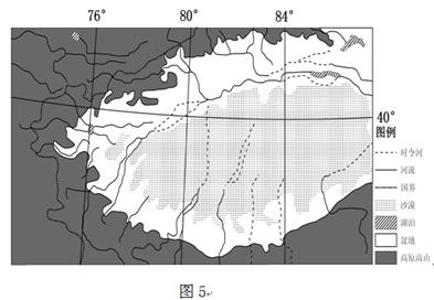 阅读图文资料并结合所学知识,完成下列各题。(20分)20世纪50年代以来,图5中我国境内某些区域建立了许多国营农场,引种优质长绒棉。目前,这些区域的棉区是我国最大的商品棉生