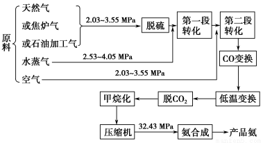 以合成氨工厂工艺流程如下图,试回答相关问题:(1)不同的原料生产氢气其经济指标如下表:天然气石脑油重油煤焦5.66.58.0-28~3035.541.854.4257390~447220~280500