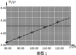| 摆长l/cm | 80.00 | 90.00 | 100.00 | 110.00 | 120.00 |