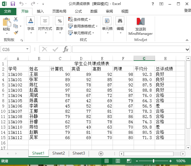 [问答题,材料题,分析] (简答题)依据题49所示Excel2010工作表数据的计算结果,要求:(1)写出G3单元格中所使用的函数公式;(2)写出H3单元格中所使用的平均分大于85为良好,平均分在60-85分之间的为合格,否则为差的函数公式。