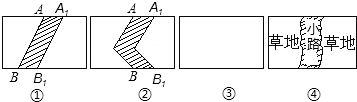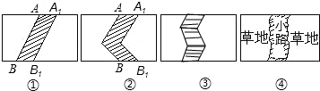 (1)图①是将线段AB向右平移1个单位长度,图②是将线段AB折一下再向右平移1个单位长度,请在图③中画出一条有两个折点的折线向右平移1个单位长度的图形.(2)若长方形的长为a,宽为b,请分别写出三个图形中除去阴影部分后剩余部分的面积.