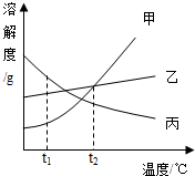 (2)根据甲乙两种物质的溶解度曲线不难看出,温度低于t2℃时,乙的溶解度小于甲的溶解度,故答案为:t<t2℃