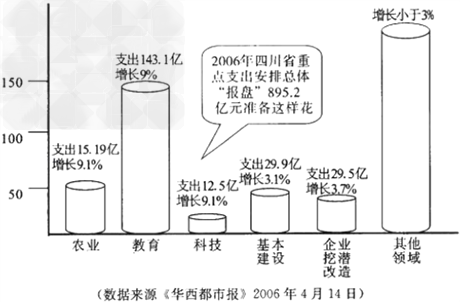 2006年4月13日四川省财政厅召开新闻发布会,首次采取这种方式向全省人民“报盘”全年的财政安排,是打造“阳光财政”,明明白白花钱,确保纳税人知情权的一个重要举措.下图是《华