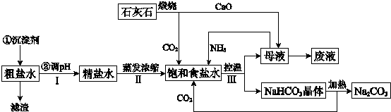 在处理粗盐水的过程中,可加入石灰乳和纯碱作为沉淀剂,则所得滤渣的成分除过量的沉淀剂外还有______(填化学式).过程Ⅲ中生成NaHCO