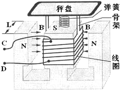 (2)秤盘和线圈向上恢复到未放重物时的位置并静止,说明安培力的方向向上,由左手定则即可判断出电流的方向是逆时针方向(从上向下看),电流由C流出,由D流入.