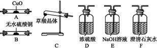 最佳答案: 答案:(1)B E F (2)草酸在达到分解温度前先熔化 (3)37.8 (4)A (5)脱水剂 CED (6)还原 解析:(1)检验产物的顺序应为:检验水蒸气→检验CO2→除去CO2 →确认已经将CO2除尽→通过灼热氧化铜...