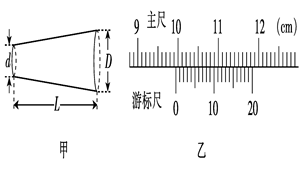 (6分)有一根圆台状匀质合金棒如图甲所示,某同学猜测其电阻的大小与该合金棒的电阻率ρ、长度L和两底面直径d、D有关.他进行了如下实验:(1)测量该合金棒电阻的实物电路如