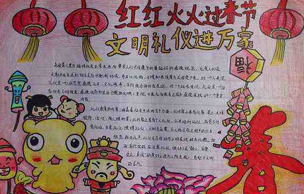 最佳答案: 帮你找了一些比好的模板,你选一个喜欢的照着画,然后把模板空的位置写一些春节的相关信息进去就可以了。