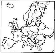 读欧洲政区简图(部分),回答下列问题:(1)写出图中字母所代表的国家名称: