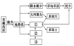 大约在4000万年前,青藏高原开始从海底隆升。经过漫长而缓慢地抬升,现在青藏高原的平均海拔已超过4500米,形成了独特的自然景观。结合下图回答下列各题。1.方框内①②③