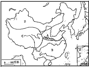 (1)A区与B区的分界线大致沿______-______一线分布,与我国一月______等温线和______降水量线很接近.
