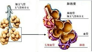 肺的功能是进行气体交换,而肺进行气体交换的场所是肺泡,因此肺泡是肺的功能单位,同时,从肺的结构来看,肺泡又是肺的结构单位,如图所示: