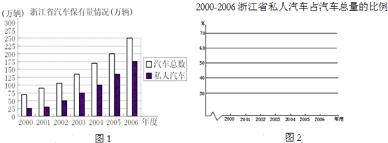 据2008年5月14日钱江晚报“浙江人的买车热情真是高”报道,至2006年底,我省汽车保有量情况如下图1所示.其中私人汽车占汽车总量的大致比例可以由下表进行统计:(单位:万辆)年度