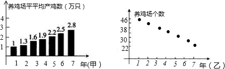 甲、乙两人连续7年调查某县养鸡业的情况,分别提供的信息如下图所示:可得到的正确判断是( )![]()