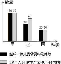某种产品由甲、乙、丙三种元件构成.根据图2,为使生产效率最高,在表示工人分配的扇形图中,生产甲、乙、丙元件的工人数量所对应的扇形圆心角的大小依次是()A.120°,180°,6