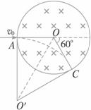 如图6-6所示,以O点为圆心,r为半径的圆形空间存在着垂直纸面向里的匀强磁场,一带电粒子从A点正对O点以速度v 0 垂直于磁场射入,从C射出,∠AOC=120°,则该粒子在磁场中运动的时间是多少?