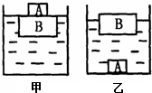 ②从甲图可知,金属块A和木块B在水中漂浮,