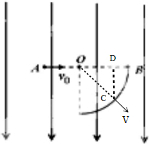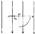 如图所示,半径R=0.5m的14圆弧接受屏位于电场强度方向向下的匀强电场中,OB水平,一质量为m=10-4kg,带电荷量为q=8.0×10-5C的粒子从与圆弧圆心O等高且距O点0.3m的A点以初速度v