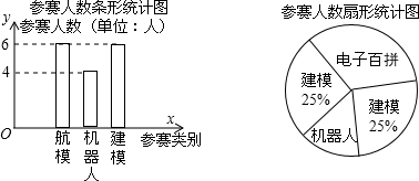 如图为某校2012年参加科技比赛(包括电子百拼、航模、机器人、建模四个类别)的人数统计图:根据图中信息,给出下列判断:①该校参加科技比赛的人数是24人;②该校参加电子百拼的人