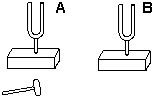| 请阅读下列短文,并回答文后的问题: 共 鸣 小羽发现了这样的现象:把空热水瓶、空瓶子或空水杯等的口挨近耳朵,会听到“嗡嗡”声.小羽想:声音是由物体振动引起的,可是,这些空容器里并没有发声源呀.这是怎么回事呢? 小羽请教了老师,老师告诉他,这是声学上的一种共鸣现象.可是小羽又有了新的疑问:在什么条件下才会发生共鸣呢? 在老师的帮助下,小羽进行了下列实验: 把两个频率相同的音叉如图放置,用小锤敲击音叉A,几秒钟后,用手握住音叉A的叉股,使它不再振动发声,这时可以听到音叉B在发声.拿一个用线悬吊的轻质小球跟这个音叉的叉股接触,轻质小球被弹开.表明这个音叉在振动. 在音叉A的叉股上套上一个铁架子,改变它的振动频率,重做上述实验,另一个音叉不再振动发声. 可见,当两个发声频率 ______的物体,彼此相隔不远时,如果其中一个物体发声,另一个也有可能跟着 ______,这种现象,就叫做“共鸣”. 请回答下列问题: (1)请帮小羽把文中的填空填完整. (2)从电视画面上我们常常看到,登山队员们在翻越一座座雪山时,总是默默无言地前进,绝对禁止他们大声呼喊,这是为什么呢? 答:原来,人在大声呼喊的时候,会发出多种频率的声波,通过空气传递给高山上的积雪层,往往会引起积雪的 ______.如果有一种喊叫声的频率恰好与积雪层的固有频率 ______,就会形成 ______,积雪层就可能因强烈的振动而崩塌下来.这对运动员来说,是很危险的.因此禁止高声呼喊,就成了登山队员的一条戒律. |