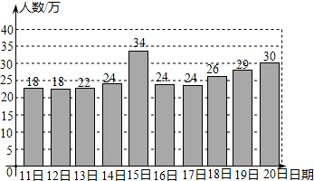 上海世博会自2010年5月1日到10月31日,历时184天,预测参观人数达7000万人次,如图是此次盛会在5月中旬入园人数的统计情况.![]() (1)请根据统计图完成下表: