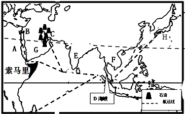 最佳答案: (1)图中索马里半岛位于A非洲,该大洲与亚洲的分界线B是苏伊士运河.(2)图中C是波斯湾,该海湾及其沿岸地区的石油资源非常丰富,从这里向外运输该资源的船只,向东经过D马六甲海峡,主要运往亚洲的发达国家H日本...