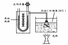 最佳答案: (1)25℃是植物光合作用的适宜温度,保证光合作用中酶的催化效率?? ???(2)③④⑧ ?(3)②; (4)左高右低;光合作用产生氧气,使瓶内气压升高 (5)左低右高...